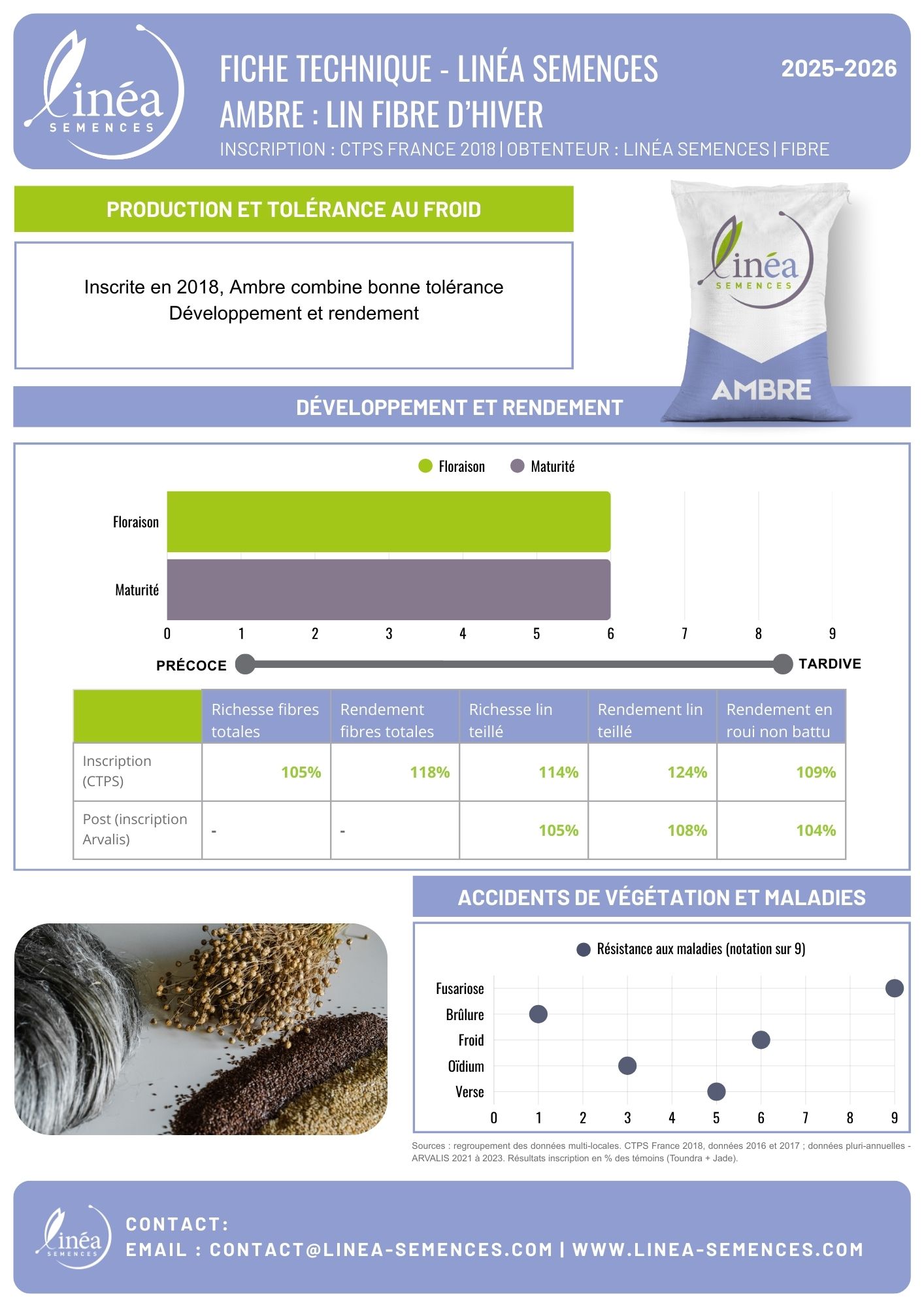 Inscrite en 2018, Ambre combine bonne tolérance au froid avec des caractéristiques de production en lin teillé très élevées