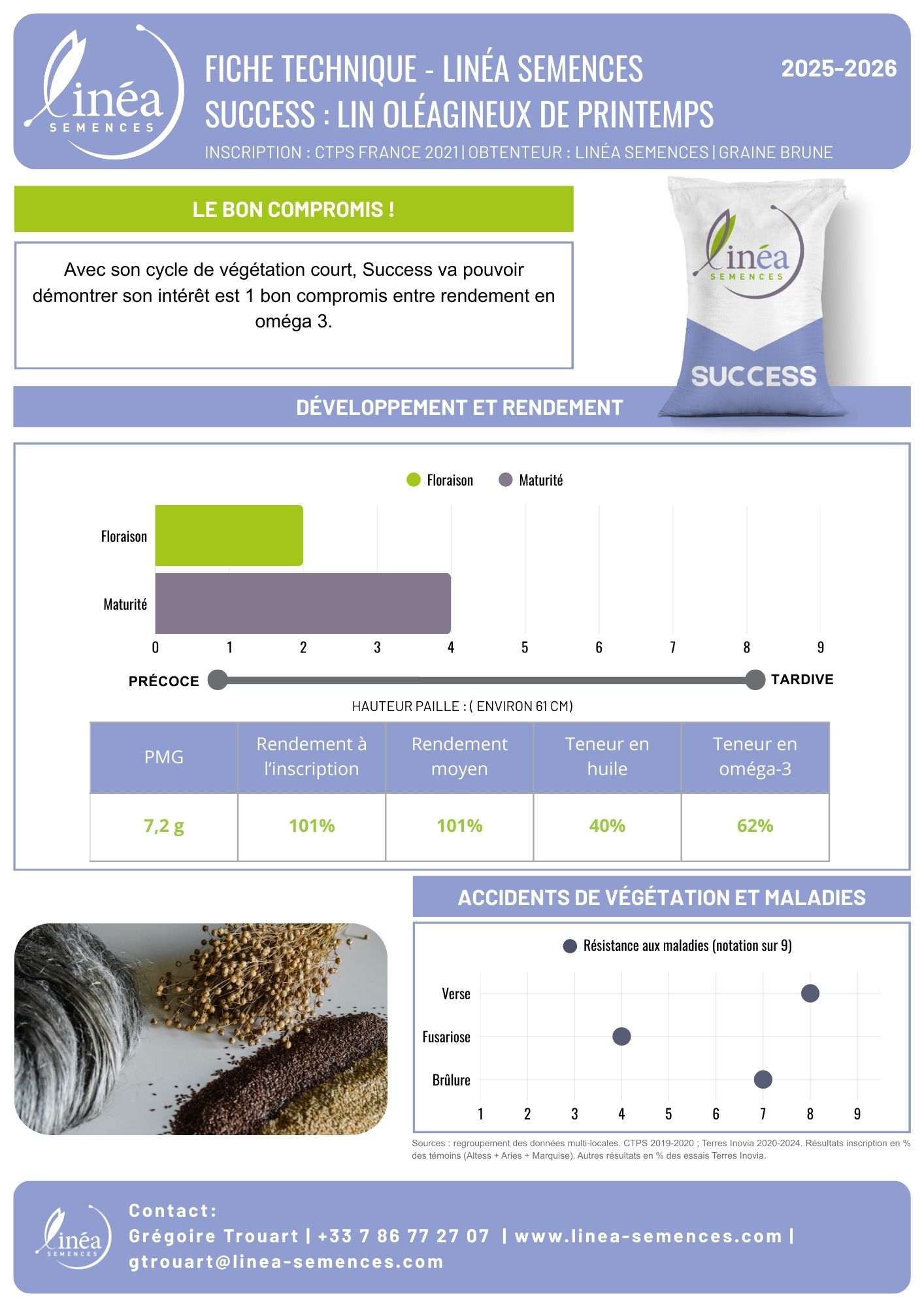 Avec son cycle de végétation court, Success va pouvoir démontrer son intérêt est 1 bon compromis entre rendement en oméga 3.